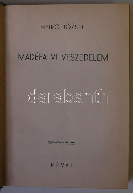 Nyírő József: Madéfalvi veszedelem, 1939. Révai Kiadó, kiadói halinakö... https://www.darabanth.com/de/168-Fernauktion/168.0/Andere-Sammelgebiete/Bucher-Sonstige-Raritaten~500040/Nyiro-Jozsef-Madefalvi-veszedelem-1939-Revai-Kiado-kiadoi-halinakotesben~II546779