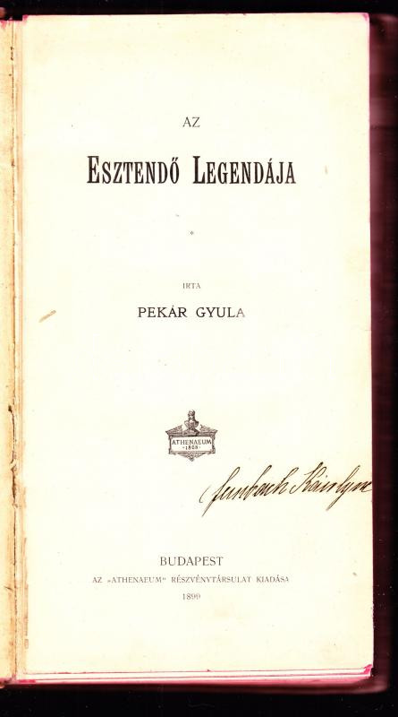Pekár Gyula: Az esztendő legendája Bp., 1899 Athenaeum. Egészvászon kö... https://www.darabanth.com/de/168-Fernauktion/168.0/Andere-Sammelgebiete/Bucher-Sonstige-Raritaten~500040/Pekar-Gyula-Az-esztendo-legendaja-Bp-1899-Athenaeum-Egeszvaszon-kotesben-eg-ylap-kijar-~II522891