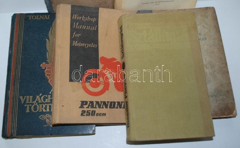 Beschreibung: 6db klf témájú könyv: Motorkerékpár műszaki tansegédlet, Sztálingrád, Tolnai: A világháború története, stb.