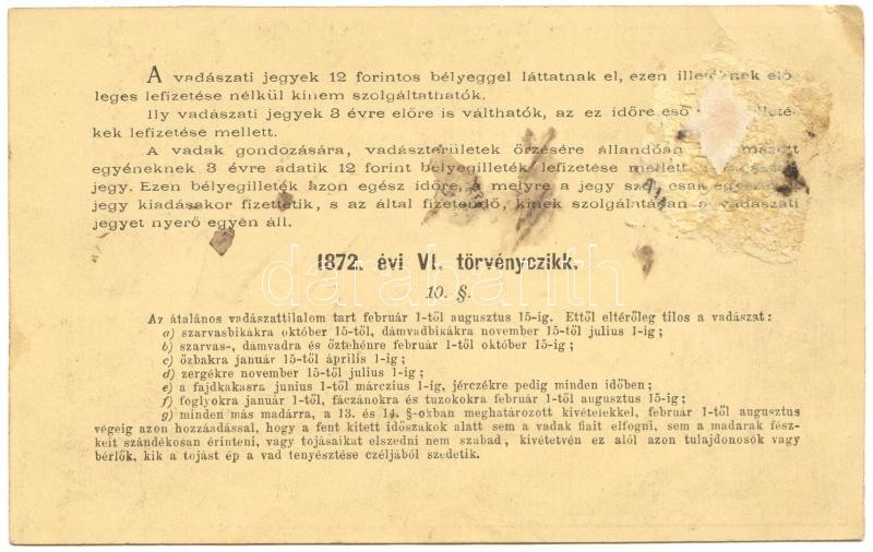 Beschreibung: 1877 Vadászati jegy 12Ft