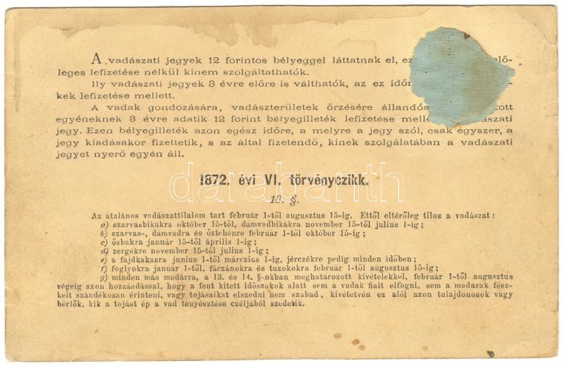 Beschreibung: 1878 Vadászati jegy 12Ft