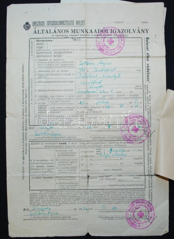 1944/1946 Általános munkaadói igazolvány a Nemzetközi Vöröskereszt pec... https://www.darabanth.com/de/168-Fernauktion/168.0/Andere-Sammelgebiete/Dokument~500024/19441946-Altalanos-munkaadoi-igazolvany-a-Nemzetkozi-Voroskereszt-pecsetjevel-mellekelve~II562134