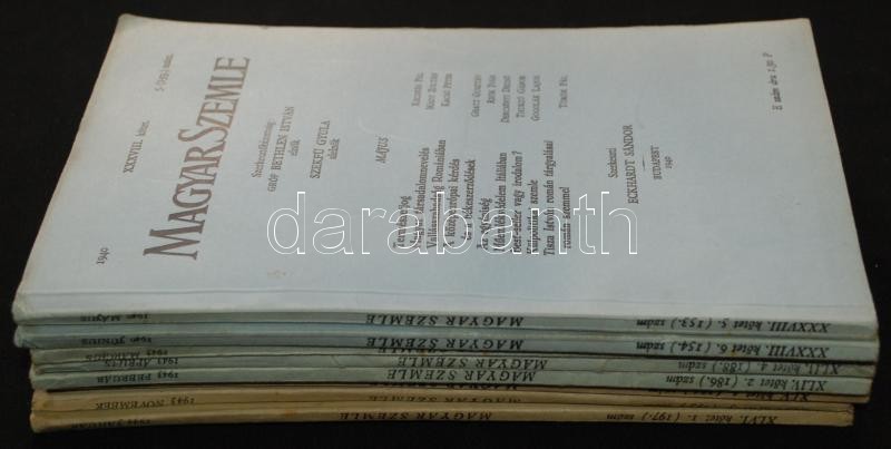 1940-1943 Magyar szemle. Szer.: Eckhadt Sándor. Minden számban külpolitikai szemle a világháború aktuális eseményeiről, világháborús diplomáciáról, összefüggésekről. 8 db szám
