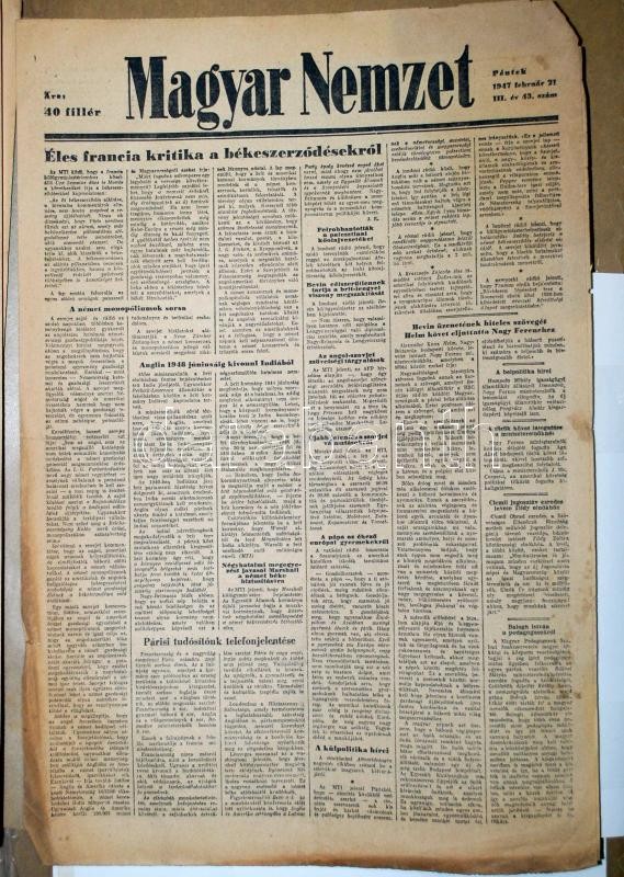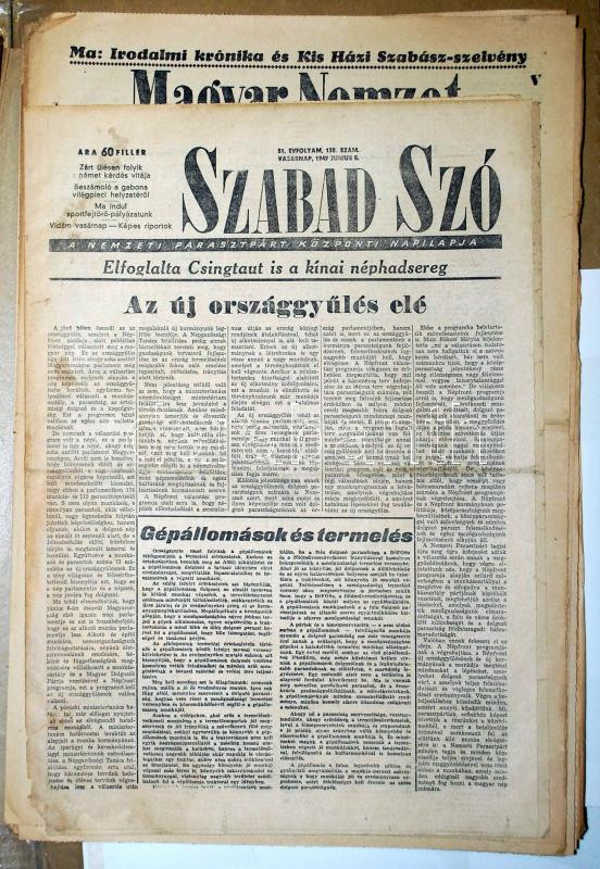 1947-1949 11db klf Szabad szó és Magyar Nemzet napilap https://www.darabanth.com/de/168-Fernauktion/168.0/Andere-Sammelgebiete/Drucksachen~2000345/1947-1949-11db-klf-Szabad-szo-es-Magyar-Nemzet-napilap~II560935