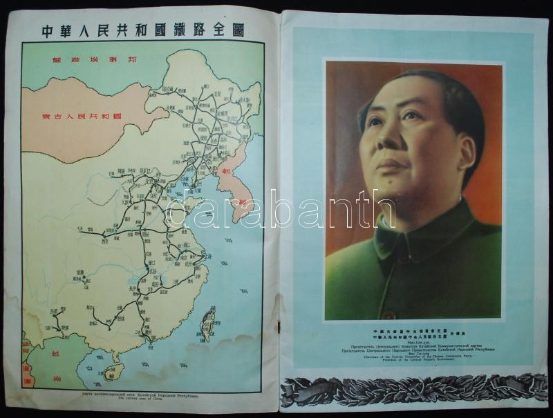 1950 Kína vasútépítői. Angol-orosz-kínai nyelvű propaganda kiadvány regeteg képpel / The railway workers of China. Propaganda booklet with many pictures 14p. 25x40 cm