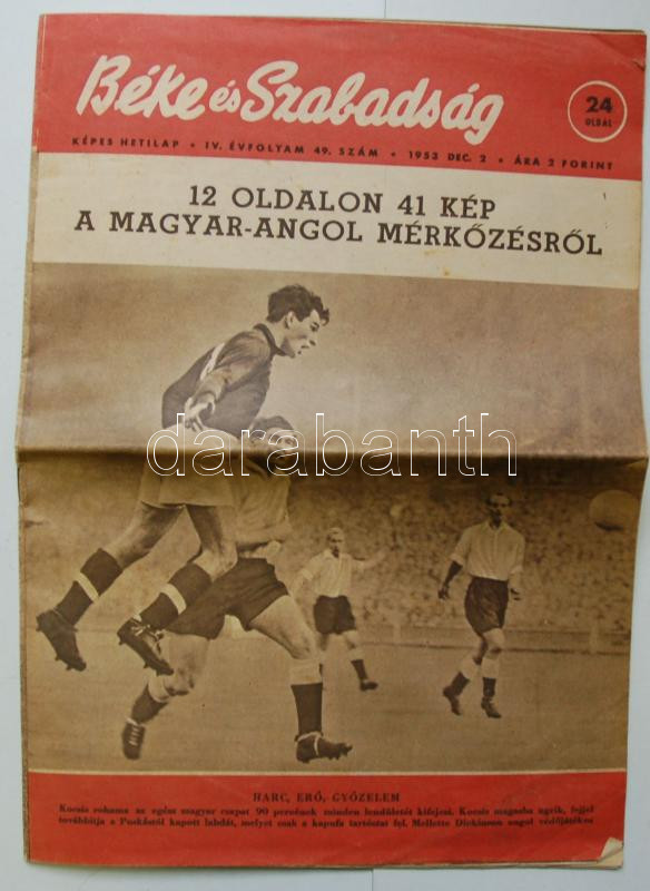 1953 A Béke és Szabadság képes tudósítása a 6:3-ról, 12 oldalon 41 kép... https://www.darabanth.com/de/168-Fernauktion/168.0/Andere-Sammelgebiete/Drucksachen~2000345/1953-A-Beke-es-Szabadsag-kepes-tudositasa-a-63-rol-12-oldalon-41-keppel~II509498