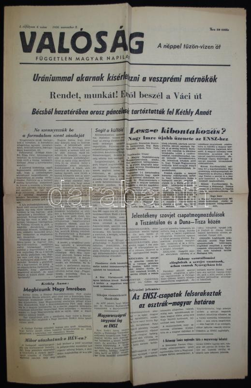 Beschreibung: 1956 A Valóság nov. 3.-i száma a forradalom híreivel