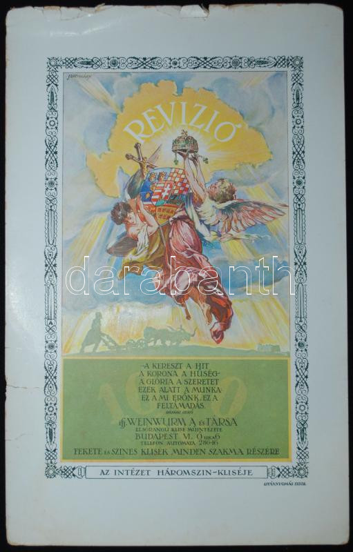 Revízió c. színes irredenta nyomtatvány Szathmáry jelzéssel 20x31cm (s... https://www.darabanth.com/de/168-Fernauktion/168.0/Andere-Sammelgebiete/Drucksachen~2000345/Revizio-c-szines-irredenta-nyomtatvany-Szathmary-jelzessel-20x31cm-serult~II562345