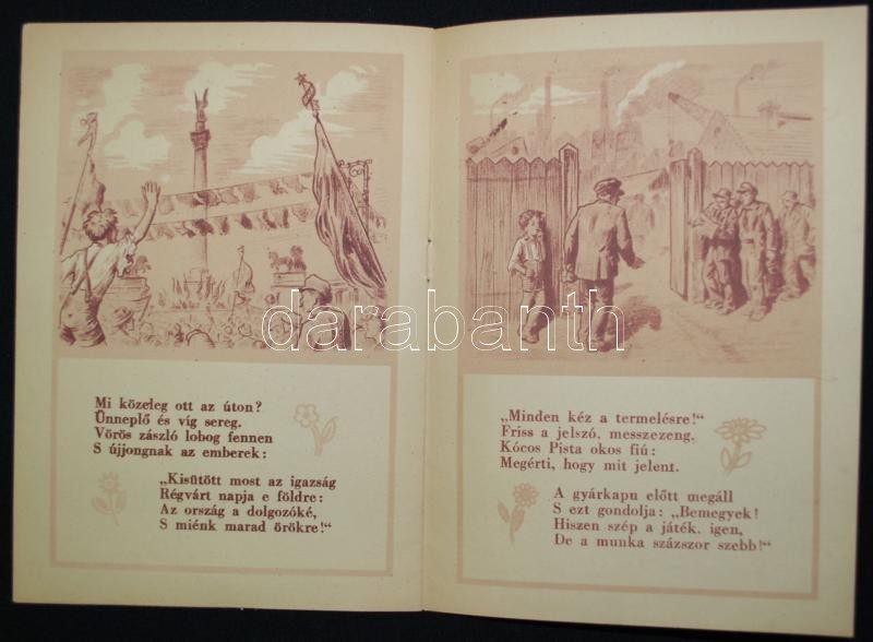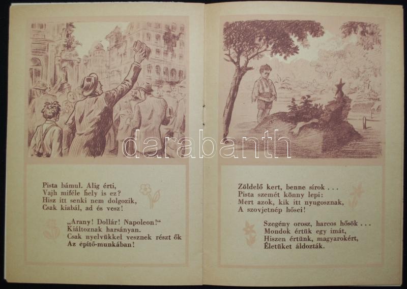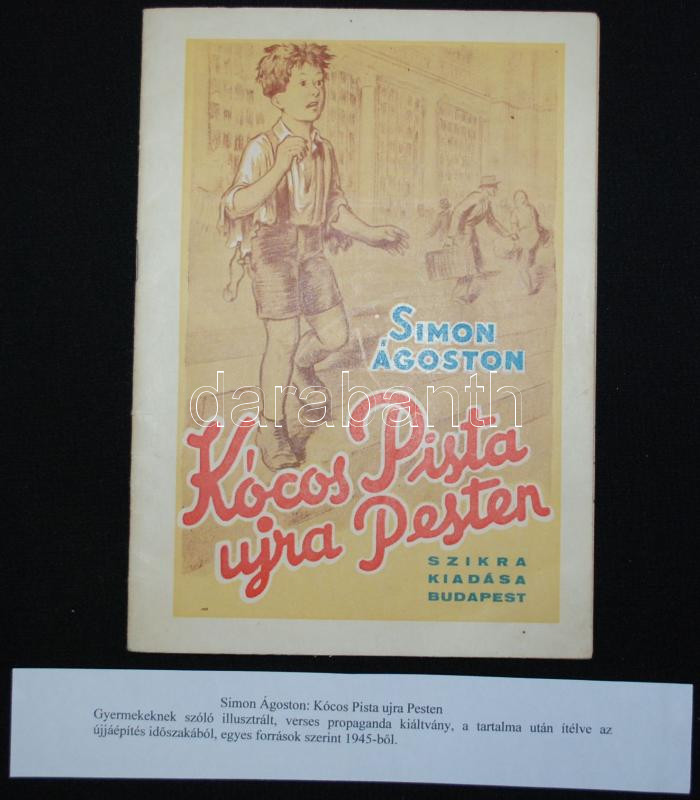 Beschreibung: Simon Ágoston, Kócos Pista újra Pesten. Képes kiadvány. egy lap kijár. Gyermekeknek szóló verse propaganda kiadvány az újjáépülő Budapestről
