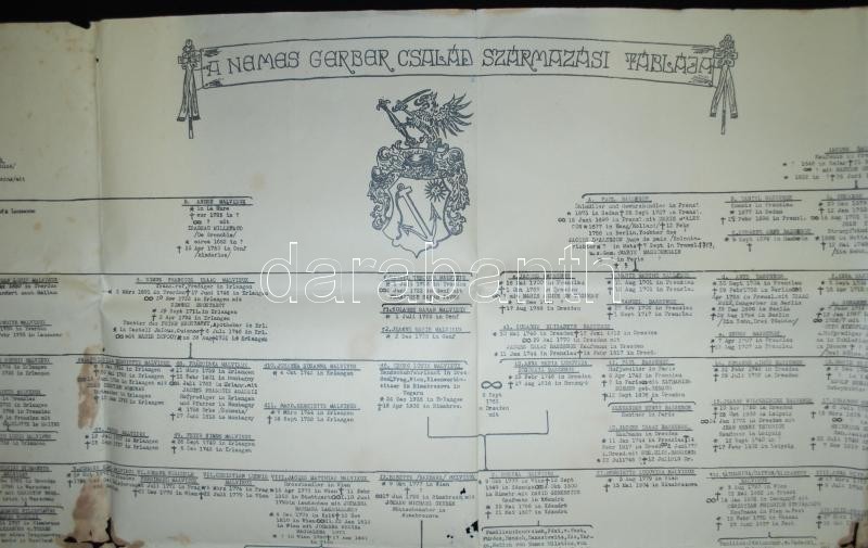 cca 1930 A nemes Gerber család származási táblája égési foltokkal 70x1... https://www.darabanth.com/de/168-Fernauktion/168.0/Andere-Sammelgebiete/Drucksachen~2000345/cca-1930-A-nemes-Gerber-csalad-szarmazasi-tablaja-egesi-foltokkal-70x100cm~II562720