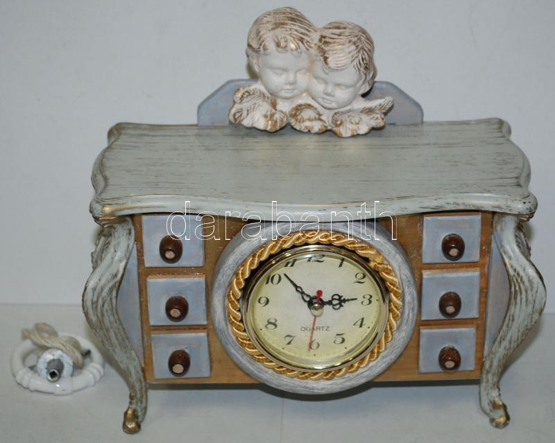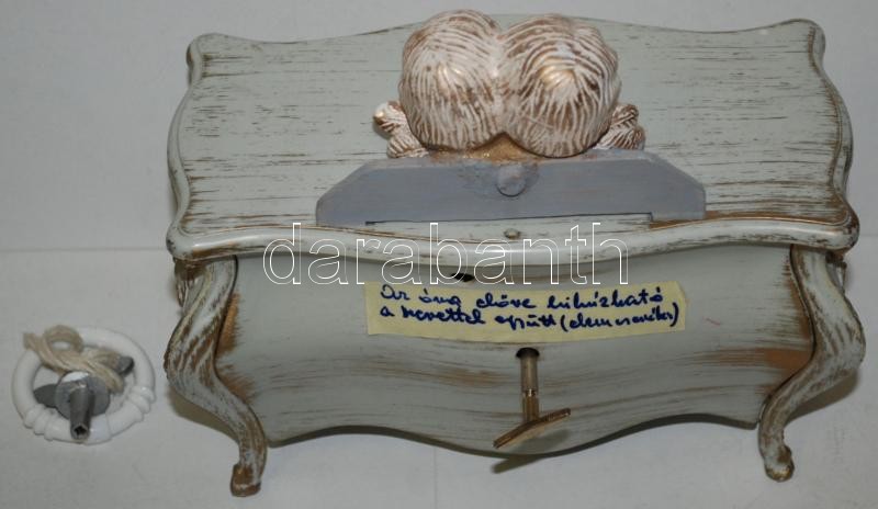 Beschreibung: Felhúzható zenélő-szerkezetű óra fa testben