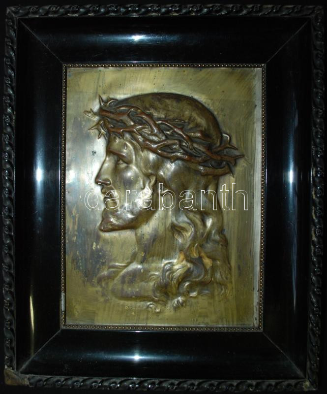 Beschreibung: Jelzés nélkül: Krisztus-fej, réz dombormű keretben, 39x32cm