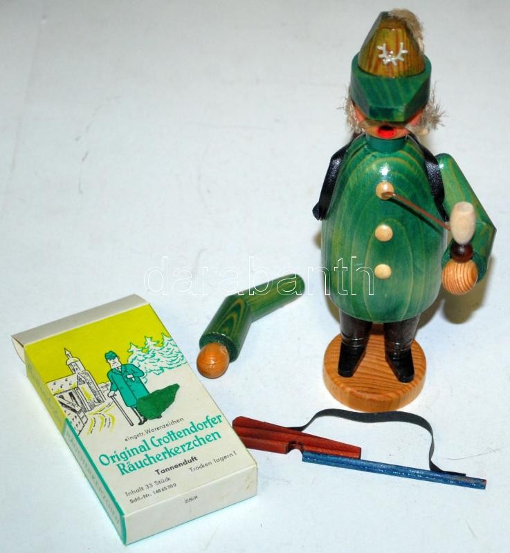 Beschreibung: Katonát ábrázoló faragott fa füstölőtartó kúp füstölővel 20cm