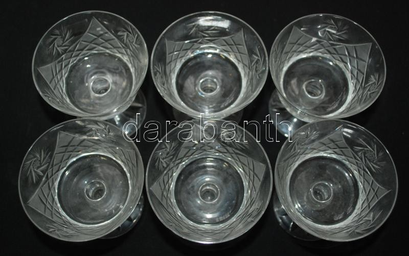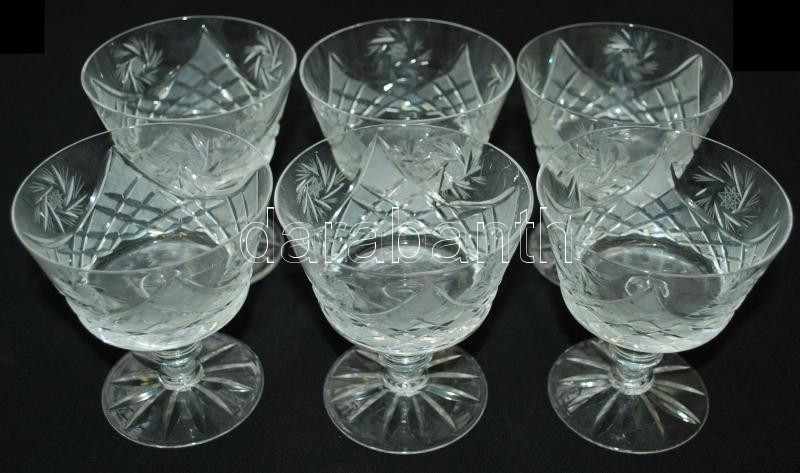 Beschreibung: Ólomkristály konyakos poharak 6db, csiszolt, kettő poháron 1 mm.-es lepattanás a szájaknál