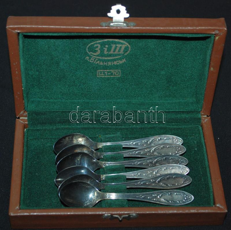 Beschreibung: Orosz ezüstözött alpakka mokkáskanál készlet eredeti dobozában