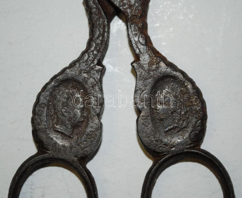 Régi olló, a szárain Ferenc József és Erzsébet királyné képével 15cm https://www.darabanth.com/de/168-Fernauktion/168.0/Andere-Sammelgebiete/Flohmarkt~500019/Regi-ollo-a-szarain-Ferenc-Jozsef-es-Erzsebet-kiralyne-kepevel-15cm~II562876