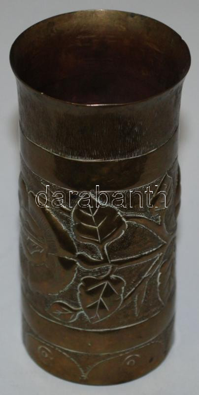 Beschreibung: Töltényhüvelyből készített váza domborművel díszítve /