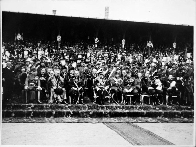 cca 1940 Horthy Miklós és Magyarország elitje részvételével állami ünnepség (Vitéz-avatás?), az első sorban többek között Móricz Zsigmonddal. Harsányi Gyula eredeti fotója 23x17 cm