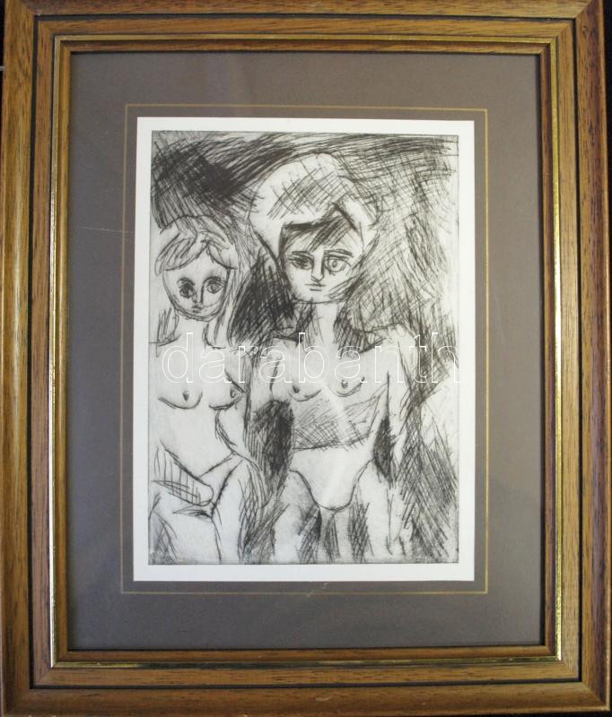 Beschreibung: Jelzés nélkül: Ádám és Éva, rézkarc, papír, üvegezett keretben, 35×29 cm