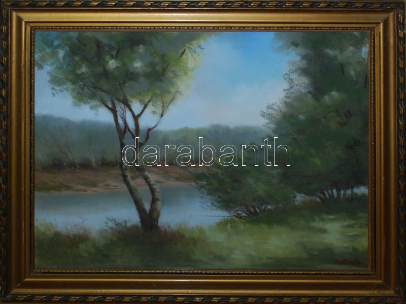 Beschreibung: Szőke jelzéssel: Folyópart, pasztell, papír, keretben 49×59 cm kerettel