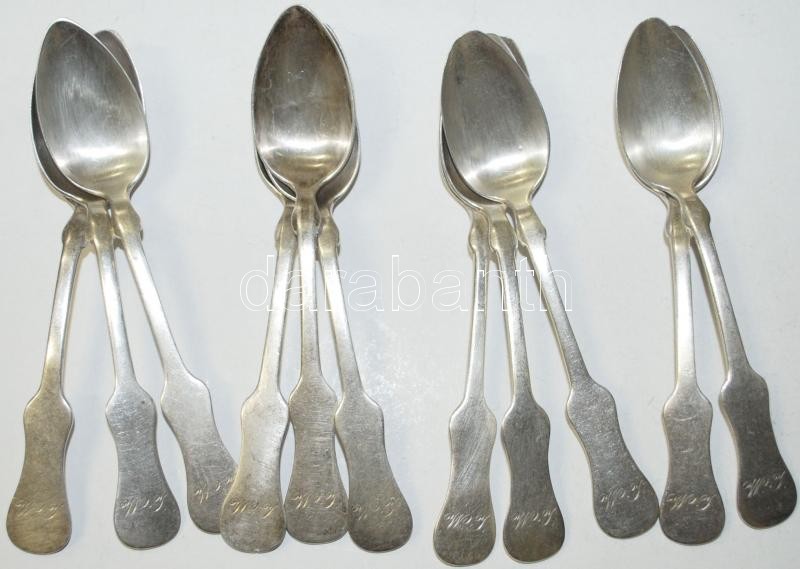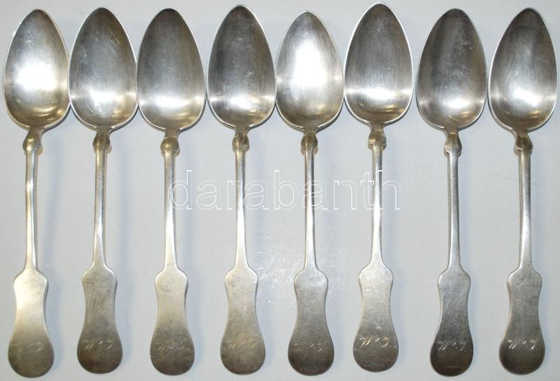 Nagy ezüst tétel: 8 db evőkanál, 11 db teáskanál, 5 db mokkáskanál, az... https://www.darabanth.com/de/168-Fernauktion/168.0/Andere-Sammelgebiete/Juwelen~2000367/Nagy-ezust-tetel-8-db-evokanal-11-db-teaskanal-5-db-mokkaskanal-az-evo-es-a-teas-mind~II565665
