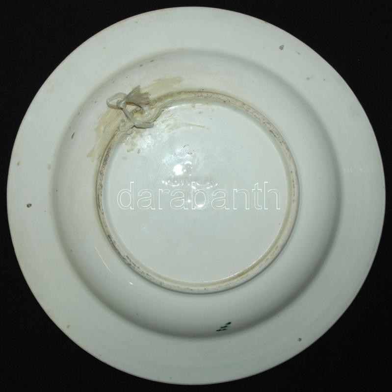 Beschreibung: cca 1900 "Légy Boldog Erzsi" felirattal és virággal díszített Telkibánya kerámia falitányér, kézzel festett, jelzett, apró lepattogzással, d: 23 cm