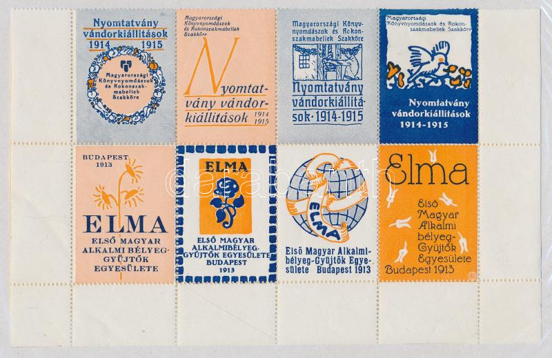 Beschreibung: 1913 Elma Magyar Alkalmi Bélyeggyűjtők Egyesülete 16 db-os levélzáró ív (hajtott)