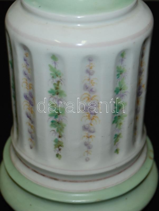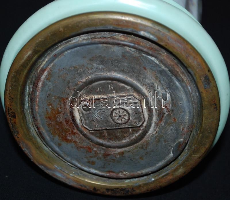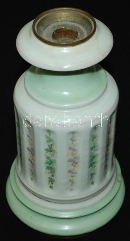 Beschreibung: Cca 1880 porcelán gyertyatartó, alján és tetején réz elemekkel, kézi festés, jelzett, apró hiba az oldalán, m:24 cm