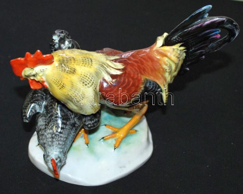 Beschreibung: Cca 1940, Drasche udvarló kakas és tyúk, kézi festésű porcelán, jelzett, Markup Béla terve alapján, hibátlan, ritka darab, m: 18 cm, h:20 cm