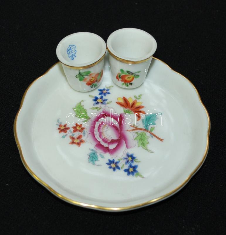 Beschreibung: Herendi kis tál és 2 db gyűszű, hibátlanok, jelzettek, tálka d:8 cm