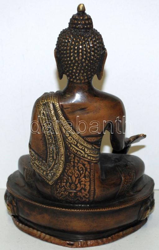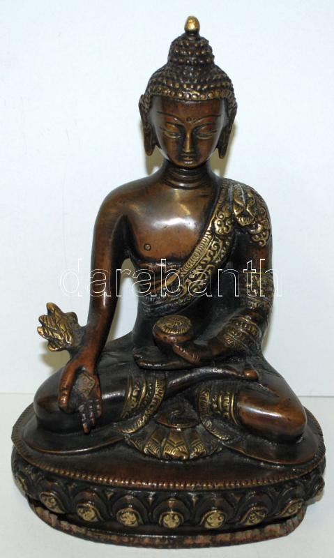 Beschreibung: Gyógyító Buddha, nepáli bronz, jelzés nélkül, m:22 cm, sz:16 cm, s:1,9 kg / Buddha bronz statue