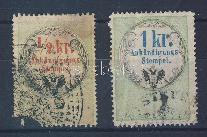 1854 Hírdetvénybélyeg 1/2kr és 1kr (46.000) https://www.darabanth.com/de/168-Fernauktion/168.0/Andere-Sammelgebiete/Stempelmarken~500023/1854-Hirdetvenybelyeg-12kr-es-1kr-46000~II563654