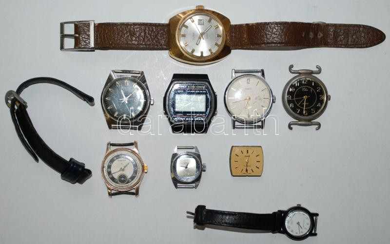 9db klf karóra szíjjal és anélkül kis dobozban, néhány működőképes https://www.darabanth.com/de/168-Fernauktion/168.0/Andere-Sammelgebiete/Uhren~500015/9db-klf-karora-szijjal-es-anelkul-kis-dobozban-nehany-mukodokepes~II563933