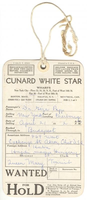 ~1930 Cunard White Star tengerjáró hajó bőröndcímkéje https://www.darabanth.com/de/168-Fernauktion/168.0/Andere-Sammelgebiete/Werbungen~500032/7E1930-Cunard-White-Star-tengerjaro-hajo-borondcimkeje~II549621