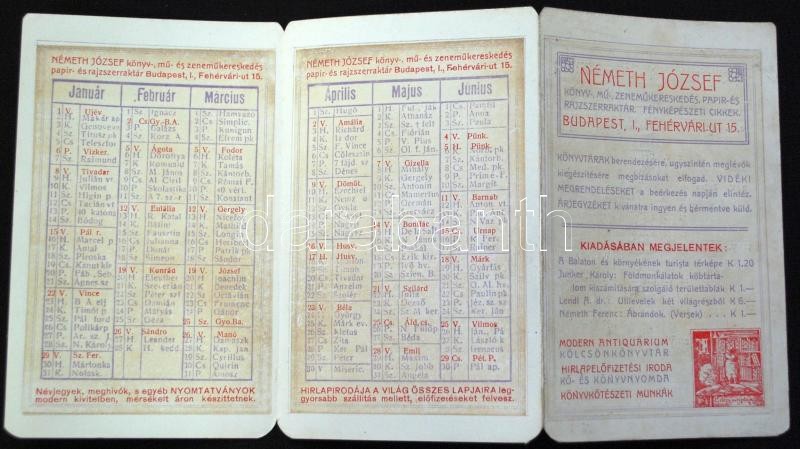 cca 1900 Németh József könyvkereskedő reklámos kártyanaptár 3 részes https://www.darabanth.com/de/168-Fernauktion/168.0/Andere-Sammelgebiete/Werbungen~500032/cca-1900-Nemeth-Jozsef-konyvkereskedo-reklamos-kartyanaptar-3-reszes~II564781