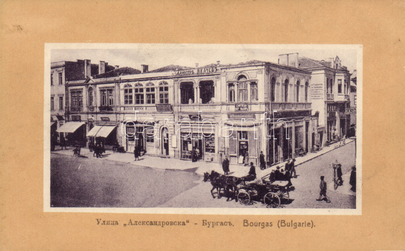Burgas Alksandrovska street with shops https://www.darabanth.com/de/168-Fernauktion/168.0/Ansichtskarten/Bulgarien~2000272/Burgas-Alksandrovska-street-with-shops~II526926