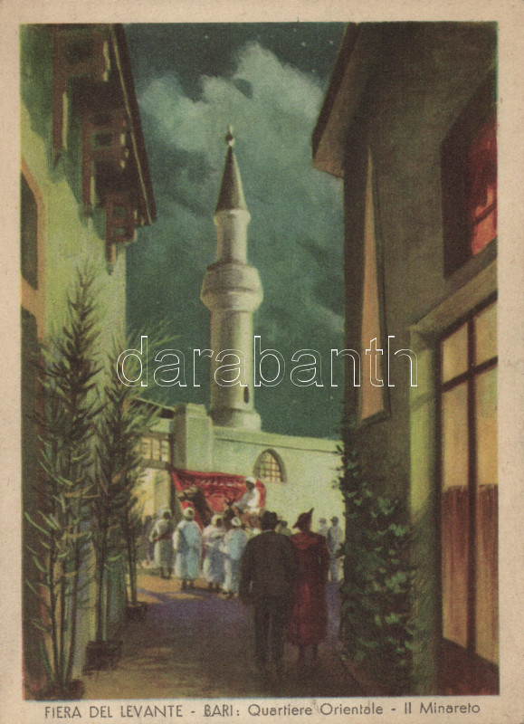 Bari Fiera del Levante Oriental district, minaret https://www.darabanth.com/de/168-Fernauktion/168.0/Ansichtskarten/Italien~2000291/Bari-Fiera-del-Levante-Oriental-district-minaret~II560490