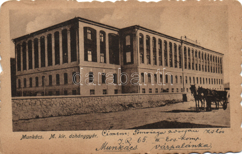 Munkács tobacco factory (EK) https://www.darabanth.com/de/168-Fernauktion/168.0/Ansichtskarten/Karpatenukraine~2000259/Munkacs-tobacco-factory-EK~II564718