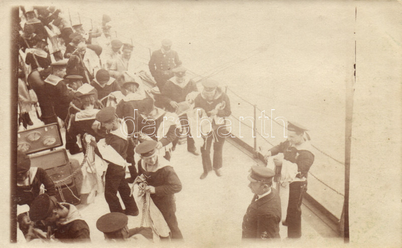 Beschreibung: K.u.K. navy, dispensing uniforms on the board of SMS Erzherzog Friedrich, photo