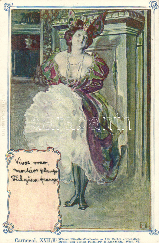 1898 Wiener Künstlerkarte, Carneval XVII/6, Philipp und Kramer https://www.darabanth.com/de/168-Fernauktion/168.0/Ansichtskarten/Kunstler~2000325/1898-Wiener-Kunstlerkarte-Carneval-XVII6-Philipp-und-Kramer~II561205