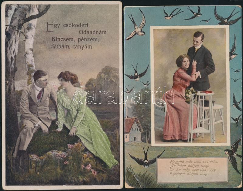 10 db háború előtti romantikus motívumlap párokról https://www.darabanth.com/de/168-Fernauktion/168.0/Ansichtskarten/Postkarten~2000253/10-db-haboru-elotti-romantikus-motivumlap-parokrol~II562692