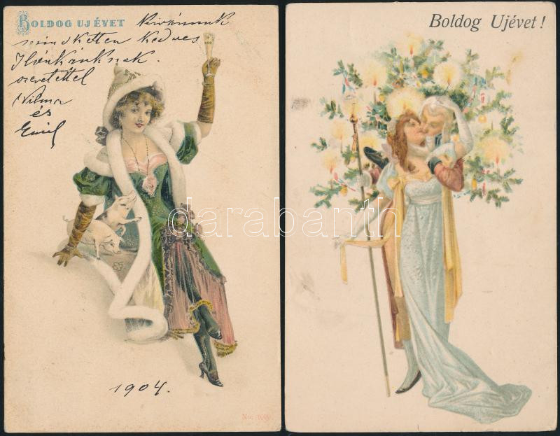 3 db újévi üdvözlőlap 1910 előttről https://www.darabanth.com/de/168-Fernauktion/168.0/Ansichtskarten/Postkarten~2000253/3-db-ujevi-udvozlolap-1910-elottrol~II562663