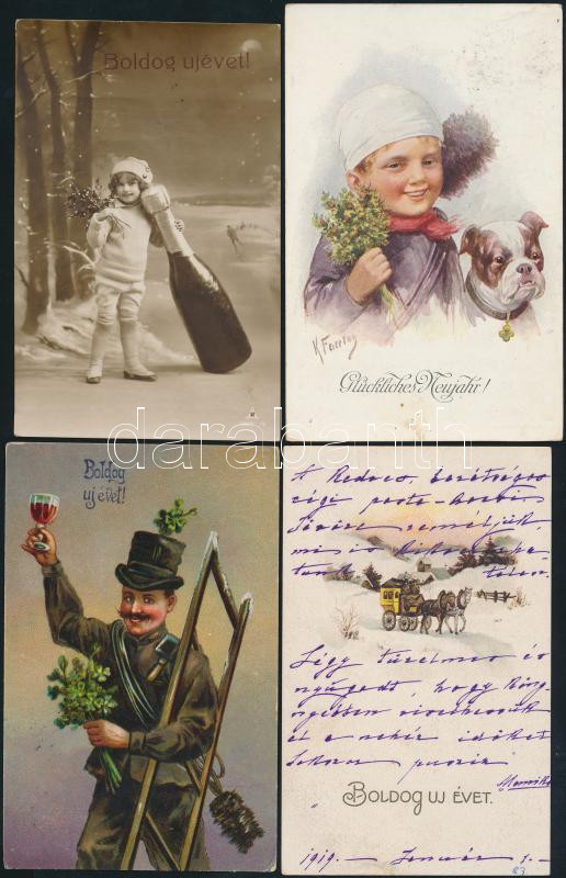 5 db háború előtti, újévi üdvözlőlap, közte két lithoval https://www.darabanth.com/de/168-Fernauktion/168.0/Ansichtskarten/Postkarten~2000253/5-db-haboru-elotti-ujevi-udvozlolap-kozte-ket-lithoval~II562643