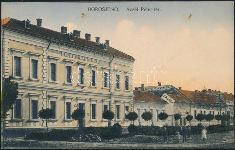 Borosjenő Aczél street, bank https://www.darabanth.com/de/168-Fernauktion/168.0/Ansichtskarten/Siebenburgen~2000257/Borosjeno-Aczel-street-bank~II563102