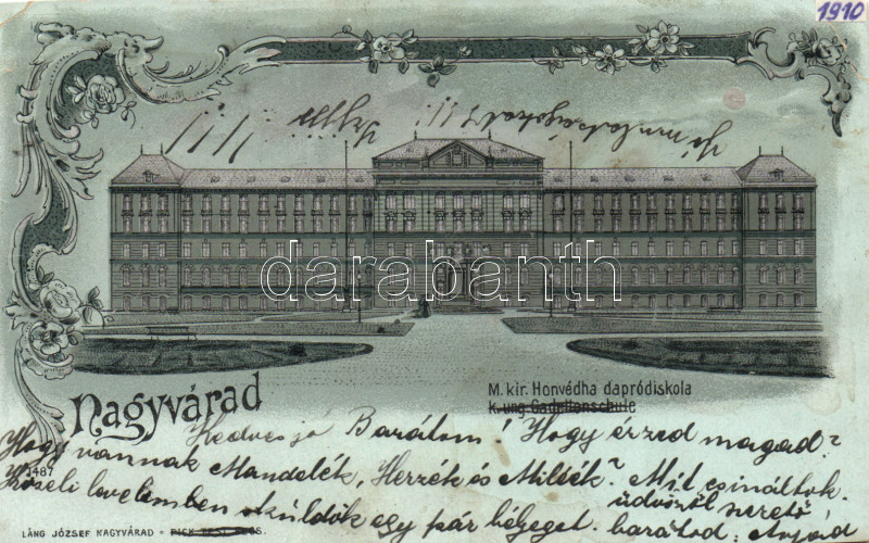 Nagyvárad Military school litho (cut) https://www.darabanth.com/de/168-Fernauktion/168.0/Ansichtskarten/Siebenburgen~2000257/Nagyvarad-Military-school-litho-cut~II561077