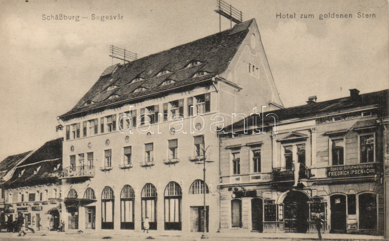 Segesvár Golden Star Hotel, Shop of Friedrich Ipsen https://www.darabanth.com/de/168-Fernauktion/168.0/Ansichtskarten/Siebenburgen~2000257/Segesvar-Golden-Star-Hotel-Shop-of-Friedrich-Ipsen~II563791