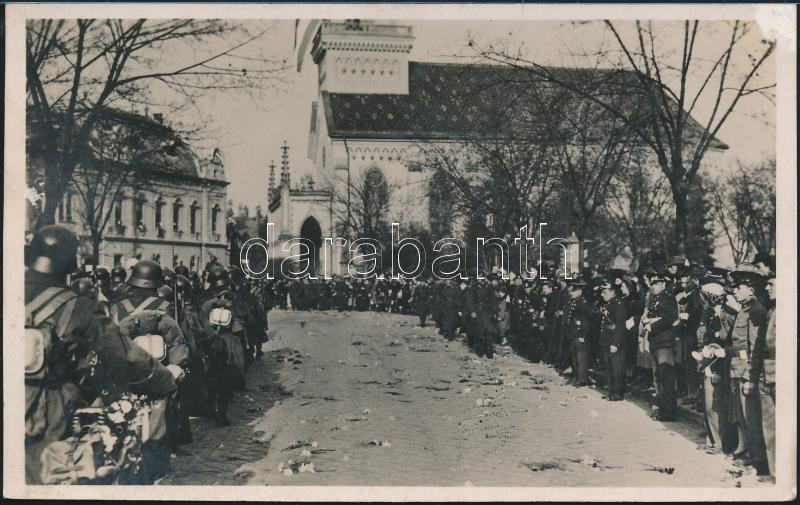 Losonc entry of the Hungarian troops (fl) https://www.darabanth.com/de/168-Fernauktion/168.0/Ansichtskarten/Slowakei~2000258/Losonc-entry-of-the-Hungarian-troops-fl~II563617