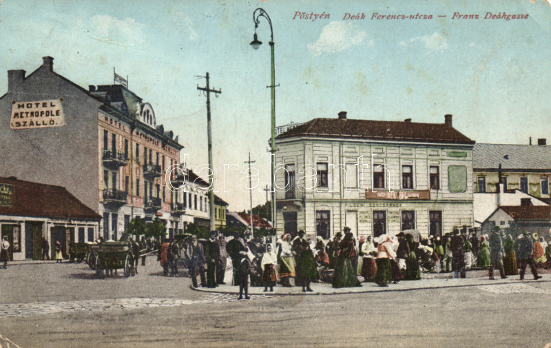 Pöstyén Deák Ferenc street, Hotel Metropole (Rb) https://www.darabanth.com/de/168-Fernauktion/168.0/Ansichtskarten/Slowakei~2000258/Postyen-Deak-Ferenc-street-Hotel-Metropole-Rb~II564347