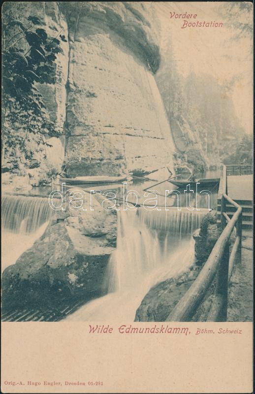 Ceske Svycarsko Edmundsklamm ship station https://www.darabanth.com/de/168-Fernauktion/168.0/Ansichtskarten/Tschechische-Republik~2000273/Ceske-Svycarsko-Edmundsklamm-ship-station~II565660