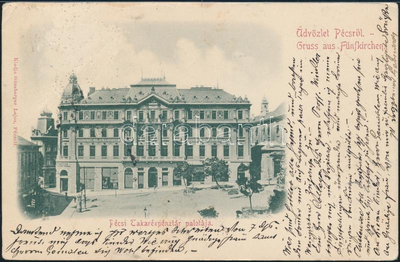 1899 Pécs Takarékpénztár (EK) https://www.darabanth.com/de/168-Fernauktion/168.0/Ansichtskarten/Ungarn~2000256/1899-Pecs-Takarekpenztar-EK~II562915